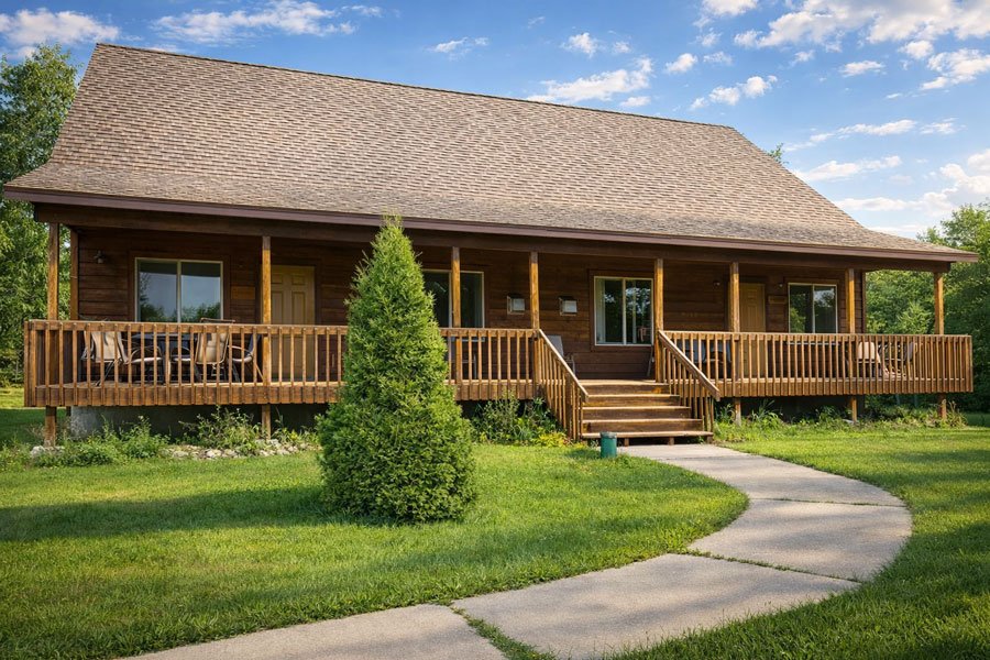 Budget Chalet is a practical, affordable chalet near White Lake, WI, with the comfort of a private stay in a duplex-style layout shared with just one neighboring unit.