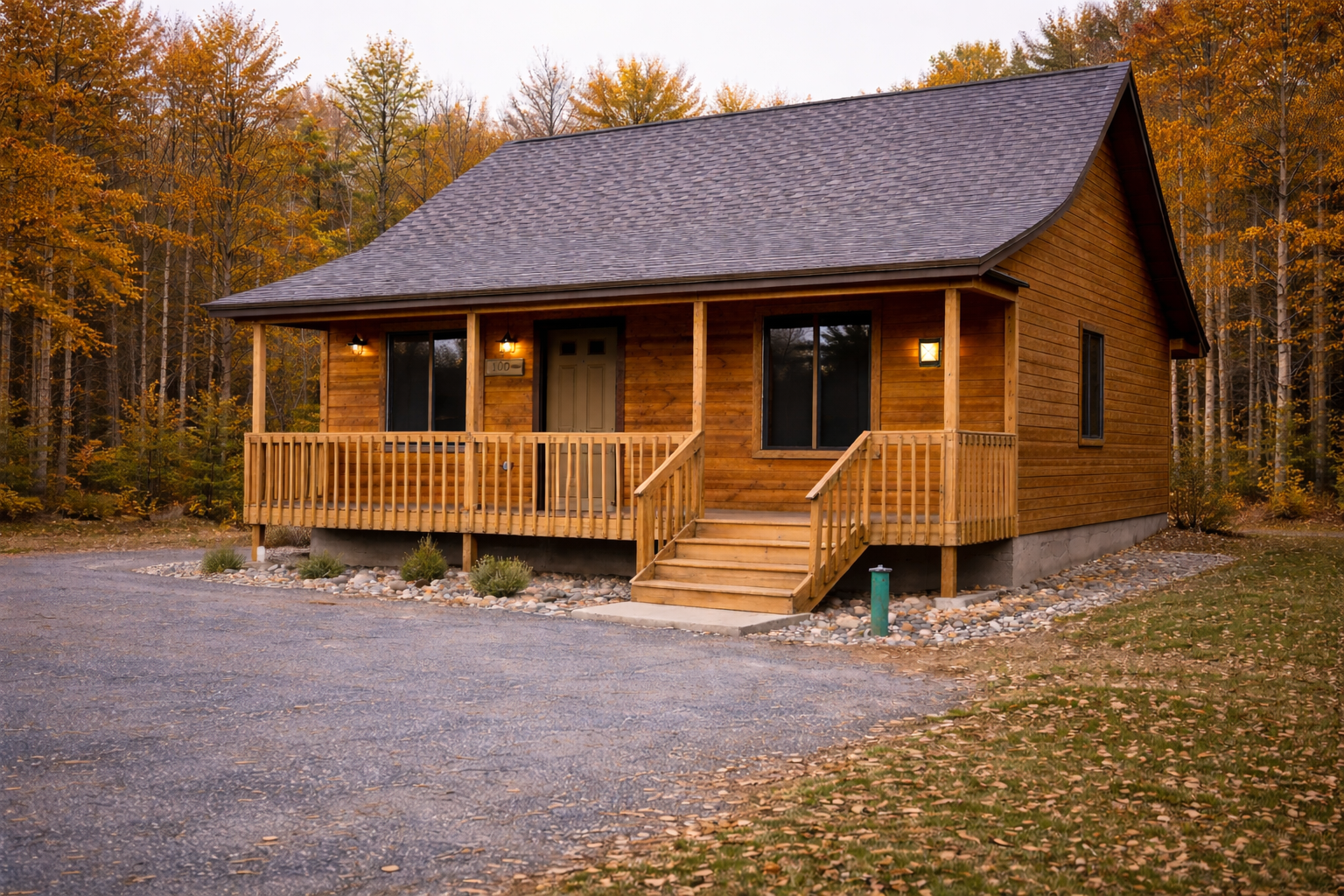 Spacious, private Chalet Knapp near the Wolf River, ideal for families or small groups. This chalet offers year-round comfort with heat, air conditioning, private bathrooms, and linens provided. Smoke-free and pet-free.