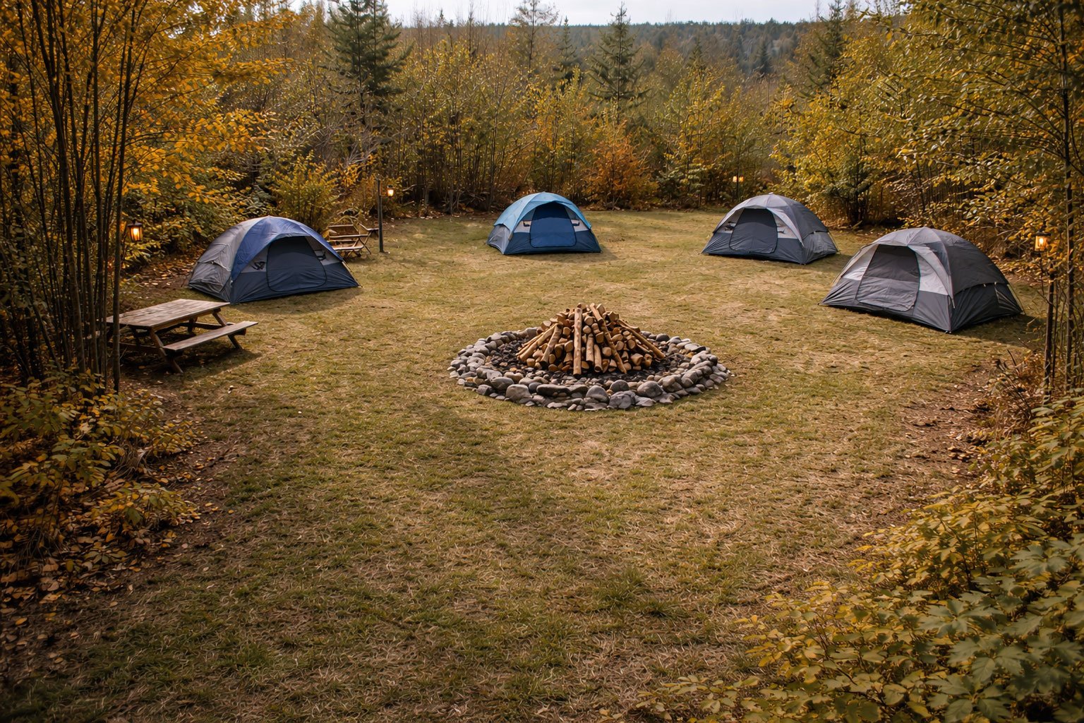 Spacious group campsites designed for large gatherings, retreats, and group camping at Bear Paw Outdoor Adventure Resort. These sites offer open, wooded space suitable for tents and group setups, with nearby access to shared facilities. Ideal for scouts, family reunions, and organized groups.