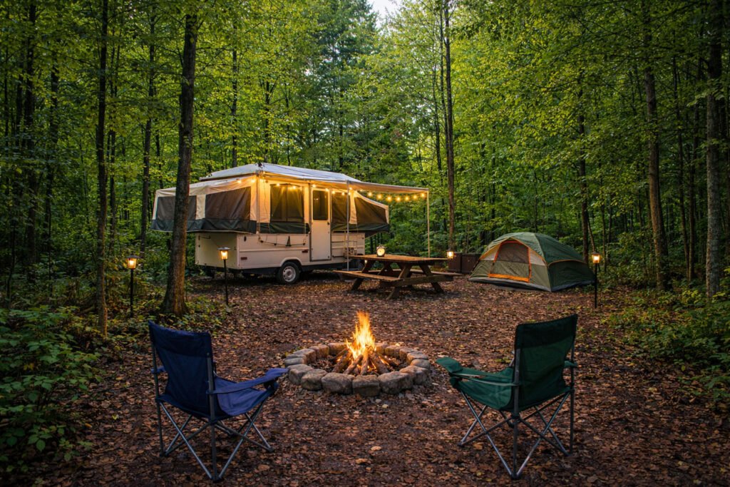 Spacious group campsites designed for large gatherings, retreats, and group camping at Bear Paw Outdoor Adventure Resort. These sites offer open, wooded space suitable for tents and group setups, with nearby access to shared facilities. Ideal for scouts, family reunions, and organized groups.