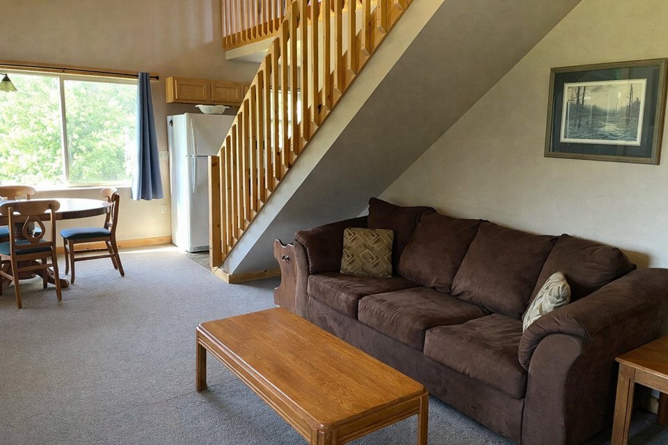 Budget Chalet is a practical, affordable chalet near White Lake, WI, with the comfort of a private stay in a duplex-style layout shared with just one neighboring unit.